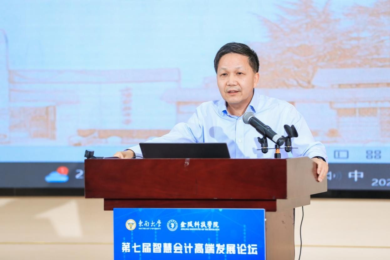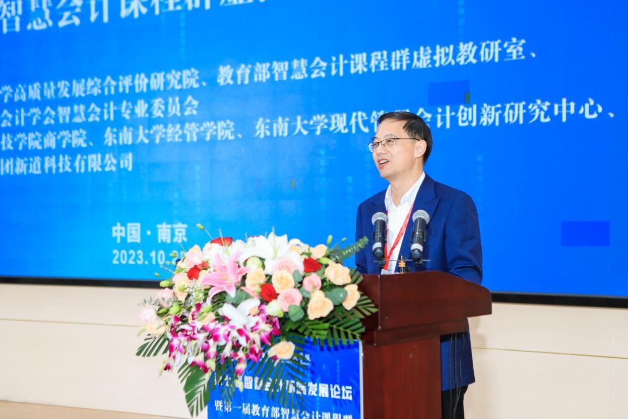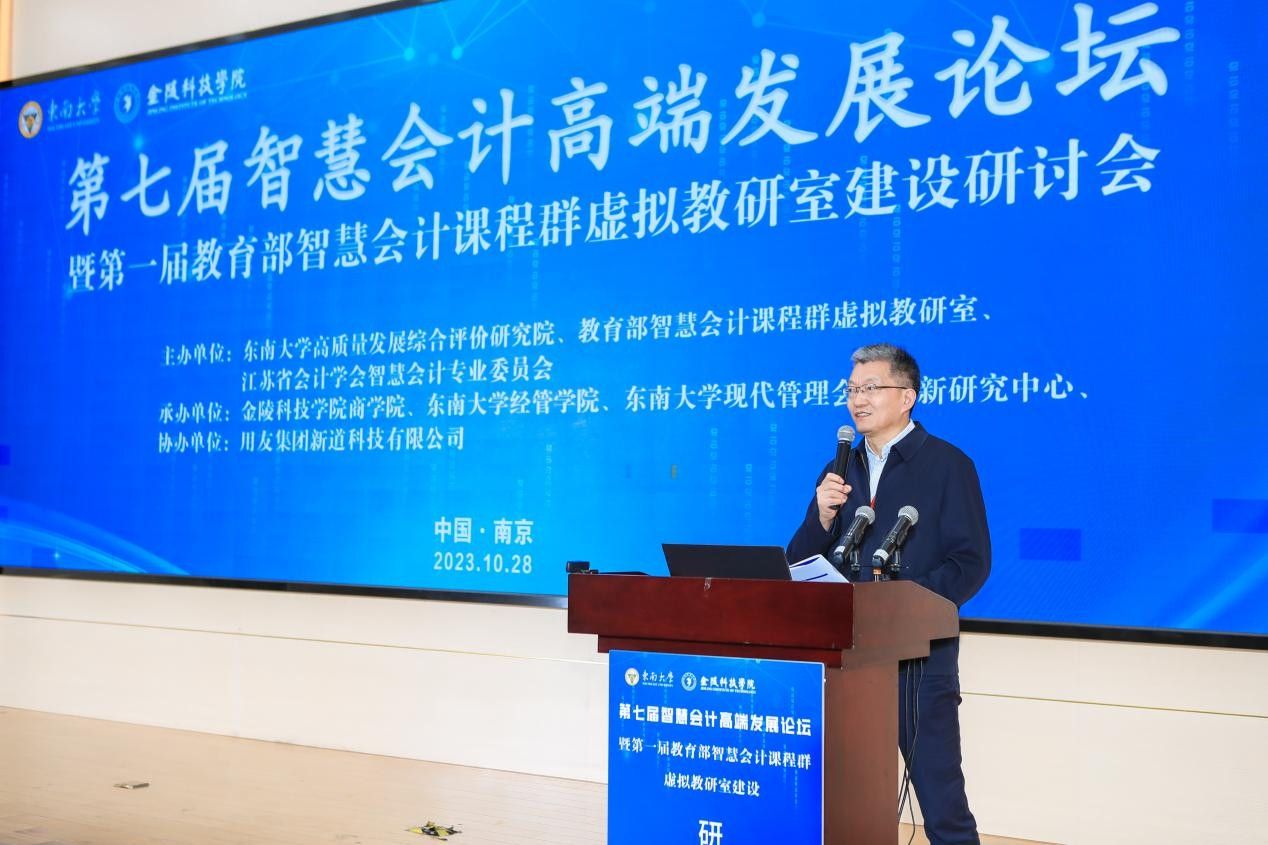 10月28日,由东南大学高质量发展综合评价研究院、教育部智慧会计课程群虚拟教研室、江苏省会计学会智慧会计专业委员会主办,BBIN宝盈官网、东南大学经管学院、东南大学现代管理会计创新研究中心联合承办,新道科技股份有限公司协办的第七届智慧会计高端发展论坛暨第一届教育部智慧会计课程群虚拟教研室建设研讨会在公司召开。本届论坛以“数字中国、数字经济与智慧会计”为主题,研讨在数字中国、数字经济发展进程中智慧会计面临的新机遇、新问题。来自南京大学、南开大学、东南大学、华中师范大学、上海财经大学、中南财经政法大学、北京交通大学、北京邮电大学、南京审计大学、北京工商大学、重庆理工大学等全国100余所高校师生和企事业单位专业人士参加了线下和线上会议。