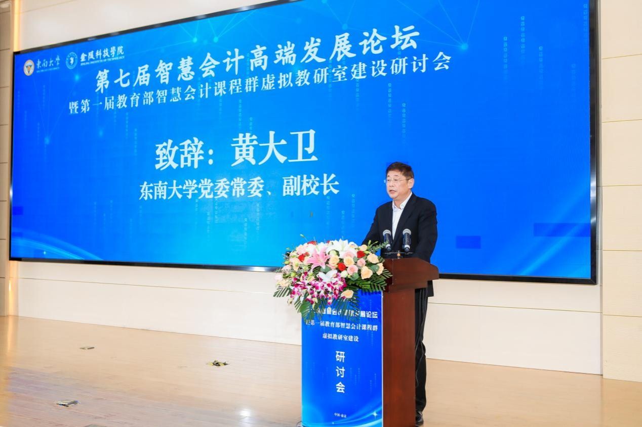 开幕式上,公司党委书记刘志远代表学校致开幕词,他介绍了学校的发展历程、办学特色以及近年来会计学专业的建设成效,并对与会专家学者表示热烈的欢迎和衷心的感谢。刘志远指出,在新一代信息技术和人工智能发展浪潮中,公司会计学专业正积极推进学科交叉与产教融合,本次论坛的举办,恰逢其时,对于学校进一步推动会计学专业建设发展具有极为重要的意义,公司将以此次论坛为契机,虚心学习,与各兄弟高校一起,积极探索高素质财会人才培养的新路径,为加快建设教育强国、办好人民满意的教育作出更大贡献。东南大学副董事长黄大卫在致辞中,回顾了东南大学会计学科近年来的发展历程和在智慧会计领域的学术研究取得的突破性进展,并感谢专家们对本次论坛的支持,祝愿本次论坛取得圆满成功。本次论坛得到了江苏省相关政府部门的指导和支持。开幕式由公司副董事长顾晓燕主持。