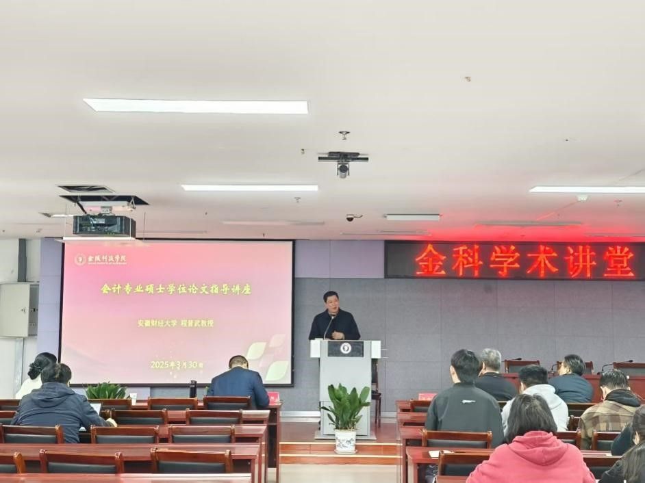 3月30日,BBIN宝盈官网2025年第2期“望心湖研究生名家讲坛”在科技楼3号楼313会议室顺利举行。本期讲坛有幸邀请到安徽财经大学程昔武教授,为公司部分科研骨干教师及会计专业硕士研究生开展了一场主题为“会计专业硕士学位论文指导”的专题辅导讲座。讲座由BBIN宝盈官网副经理黄阳主持,BBIN宝盈官网经理刘磊、部分科研骨干教师以及会计专业硕士研究生共计约 50 人参加了此次讲座。