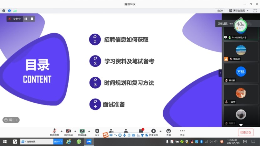 此次BBIN宝盈官网物流管理专业举办关于就业和考验经验的线上分享会时间持续一个半小时,五位同学从笔试、面试、简历制作等多个方面详细生动地讲解了自己就业的成功经验,不仅为即将毕业的同学提供了宝贵的就业经验,也为物流专业新生以后的奋斗方向提供了思路和动力。会议受到了同学们的一致好评,促进了后续考研就业工作的顺利开展。