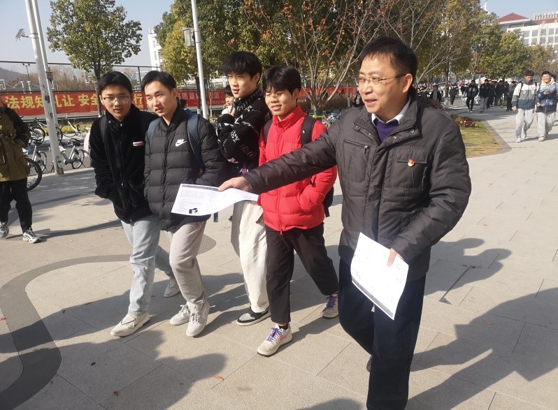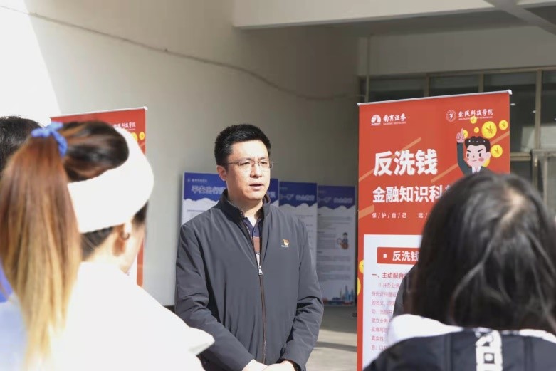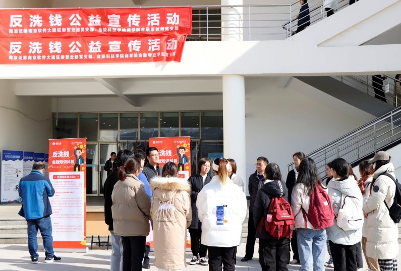 2021年12月17日上午金融系教师党支部与金融系员工党支部携手南京证券南京软件大道营业部党支部围绕“反洗钱防诈骗”主题在校内开展首次党建共建党日活动和志愿服务。公司党委书记周骏、副经理史新和,金融系教师党支部书记汪浩以及教师党员,金融专业员工党支部书记沈皆希以及员工党员,与南京证券南京软件大道营业部经理王琳、办公室主任胡招爱一同在江宁校区南区食堂广场开展反洗钱防诈骗公益宣传活动,共同发放反洗钱防诈骗宣传资料,宣传反洗钱防诈骗注意事项,并对金融系员工党员开展了反洗钱防诈骗知识宣讲,引导员工党员发挥专业特长提高反洗钱意识,切实提升防范能力,做反洗钱防诈骗的宣传员。活动最后,周书记强调,要充分发挥员工干部的示范带头作用和基层党员的先锋模范作用,加强正确使用金融服务的意识和能力,做合格的“金融人”。