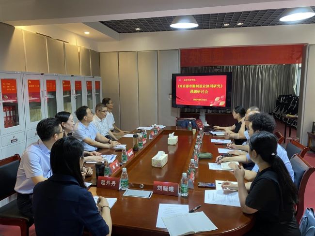 刘永彪董事长对课题组成员的前期劳动给予肯定和认可,高度评价了两位专家提出的专业精当和高屋建瓴的指导性建议和建设性意见,并对下一阶段课题研究推进提出以下要求。一是要明确立足南京制造业高质量发展的“核心基点”,重点聚焦南京制造业高质量发展中亟待解决的重点、难点和痛点问题。二是以制造业协同为抓手,积极融入全国统一大市场,重点研究人才、资本、技术、产品等核心要素跨区域、跨所有制、跨层级的联动和流通。三是要充分发挥协同发展过程中南京引领作用,重点围绕制造业领域高层次人才协同展开研究,探讨破解“人才孤岛”难题的路径。